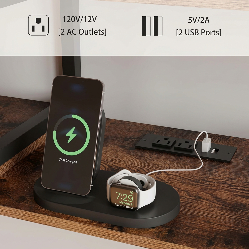 This floating TV cabinet with power outlets features a built-in charging station with 2 standard AC outlets and 2 USB ports, making it easy to connect and charge your TV, streaming devices, gaming accessories, sound systems, and other electronics in one convenient place. It helps reduce cable clutter while keeping your setup neat, organized, and ready for daily use.