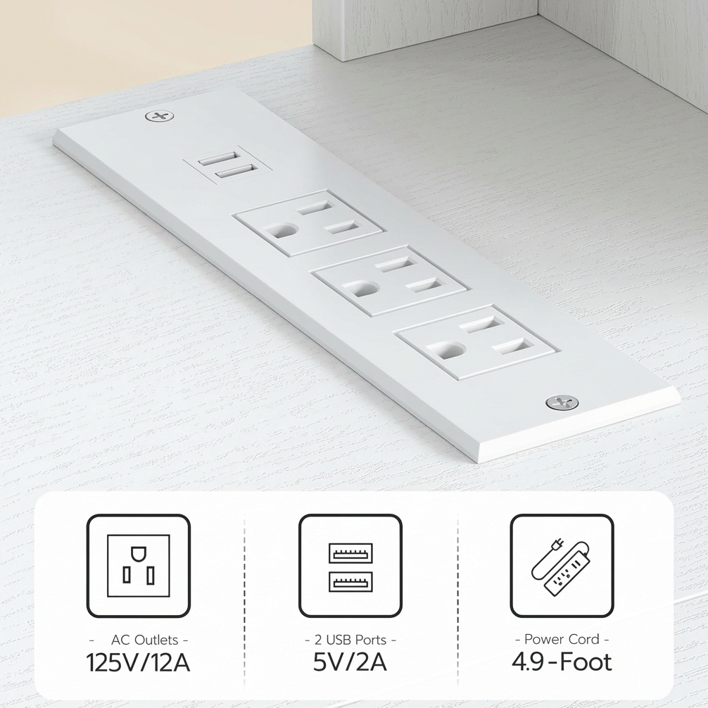 This floating TV stand with power outlet features a built-in multi-port charging station with 3 AC outlets and 2 USB ports, allowing you to conveniently power and charge multiple devices in one place. It also includes an adjustable LED light system with customizable colors, helping you create a warm, relaxing, and modern ambiance that enhances your viewing experience.